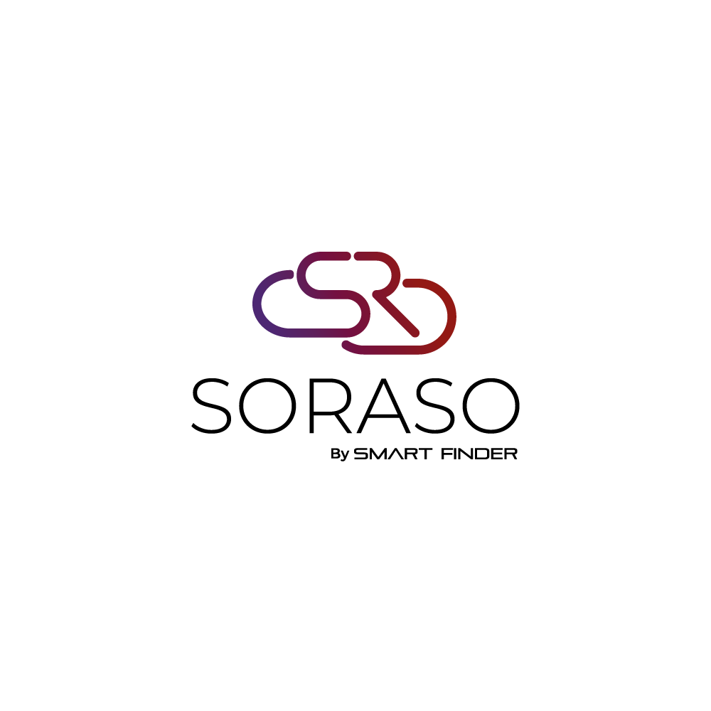 Use the vertical SORASO logo when a square (1:1) format is required and on dark backgrounds.
